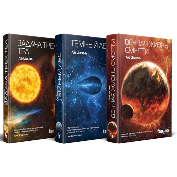 В комплект входят три книги Лю Цысиня из цикла «Воспоминания о прошлом Земли»: «Задача трех тел», «Темный лес», «Вечная жизнь Смерти».