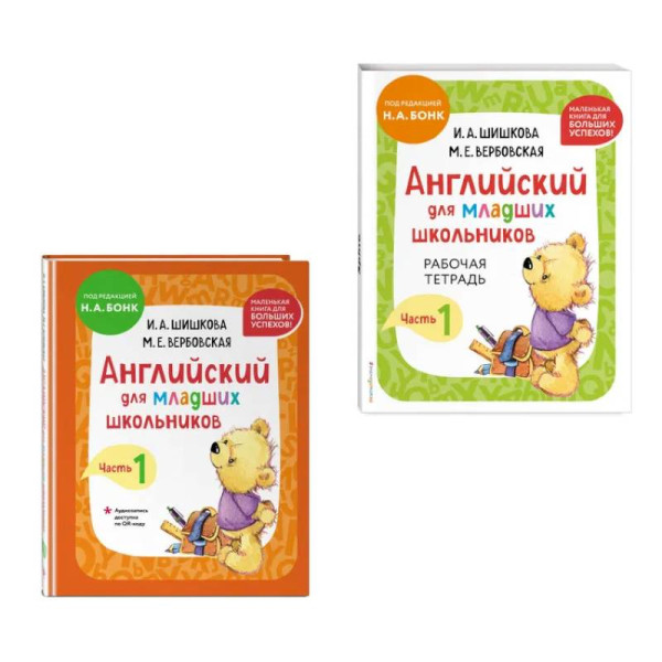 В комплект по английскому языку автора И. А. Шишковой входят книги «Английский для младших школьников. Учебник. Часть 1 (мини)» и «Английский для младших школьников. Рабочая тетрадь. Часть 1 (мини)».