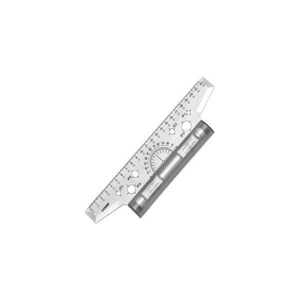 - содержит транспортир 180 град. и трафареты окружностей,