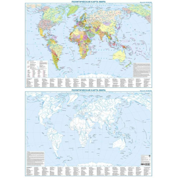 Превратите ваше пространство в источник знаний. Представляем вам двустороннюю карту формата 88х58 см на плотном картоне.  Политическая карта мира и контурная карта на обороте масштаба 1:40 000 000  не просто украсит ваш интерьер, но и станет незаменимым помощником в изучении географии. С её помощью вы сможете легко ориентироваться во множестве государств и их столиц!  Наша карта использует богатую цветовую палитру, чтобы выделить каждую страну, делая изучение географии не только увлекательным, но и визуально привлекательным. Полный список государств и столиц по континентам: Все данные собраны в одном месте, легко доступны и структурированы. Идеально подходит для школьников, стремящихся повысить свои знания о политической карте мира. Карта может стать элементом декора вашего дома или офиса. По данным международных исследований, визуальные учебные материалы повышают усваиваемость информации на 70%. Наша Политическая карта мира - это источник знаний, который расширяет горизонты! На ламинированной стороне -  контурная карта - все границы, столицы и основные объекты можно подписывать и раскрашивать стирающимися маркерами, что делает процесс познания интерактивным и увлекательным. Наша двусторонняя карта - это не просто учебные пособия, а настоящие источники вдохновения, семейного досуга и интеллектуального развития. Подарите себе и близким возможность познавать мир каждый день!