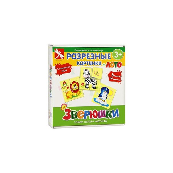 Развивающая настольная игра "Разрезанные картинки + лото: Зверюшки" поможет вашему малышу научиться складывать картинку из нескольких частей и подбирать недостающие фрагменты к картинке. Игра предлагает пять возможных вариантов игры: "Зоопарк", "Сложи картинку", "Почини картинку", "Угадай, кто это", "Лото". Перед началом игры рассмотрите вместе с ребенком содержимое коробки, разложите перед малышом картинки-образцы и разрезанные картинки. Назовите всех животных, изображенных на картинках, расскажите ребенку о них. Играя, не торопитесь подсказывать ребенку - дайте ему возможность испытать радость от самостоятельно выполненного задания. Обязательно хвалите ребенка за правильно выполненные задания. Комплект игры включает шесть картинок-образцов, 24 карточки и правила игры на русском языке. Игра способствует развитию логического мышления, внимания и памяти.