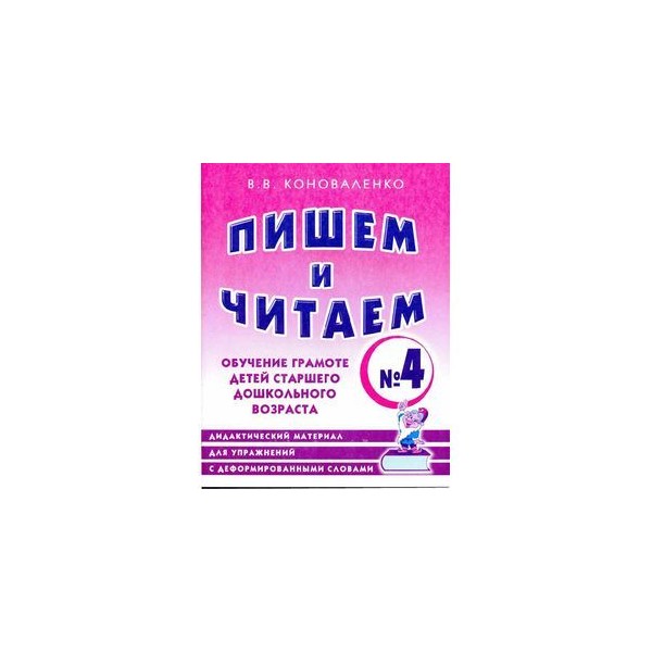 Пишем и читаем. Тетрадь № 4. Обучение грамоте детей старшего дошкольного возраста. Дидактический материал для упражнений с деформированными словами: пособие для логопедов, воспитателей, гувернеров и родителей. Пособие является приложением к комплекту тетрадей "Пишем и читаем" и содержит 168 разрезных карточек с деформированными словами. Упражнения с карточками формируют навыки стимульного звуко-буквенного анализа и синтеза, способствуют развитию зрительного внимания, расширяют словарный запас. Предназначено для занятий логопедов, воспитателей, гувернеров и родителей с детьми старшего дошкольного возраста.