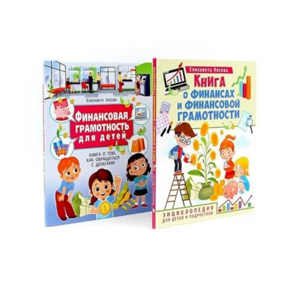 Комплект содержит книги. 'Книга о финансах и финансовой грамотности' В мире очень много самых разных денег. Это и бумажные, и металлические, и даже электронные, монеты и купюры. И, хотя верно говорят, что счастье не в них - без денег жить непросто. А вот для того, чтобы научиться быть хозяином своим деньгам нужно знать и о них, и о современном финансовом мире как можно больше! Мы надеемся, что эта книга и её воображаемые герои Монеткина, Жадина и Тютя научат тебя разбираться в самых разных, иногда сложных, вопросах, например, расскажут о банках и кредитных картах, подскажут, как планировать свой, может быть пока небольшой, личный бюджет. 'Финансовая грамотность для детей' В мире очень много самых разных денег. Это и бумажные, и металлические, и даже электронные, монеты и купюры. И, хотя верно говорят, что счастье не в них - без денег жить непросто. А вот для того, чтобы научиться быть хозяином своим деньгам нужно знать и о них, и о современном финансовом мире как можно больше! Мы надеемся, что эта книга и её воображаемые герои Монеткина, Жадина и Тютя научат тебя разбираться в самых разных, иногда сложных, вопросах, например, расскажут о банках и кредитных картах, подскажут, как планировать свой, может быть пока небольшой, личный бюджет.