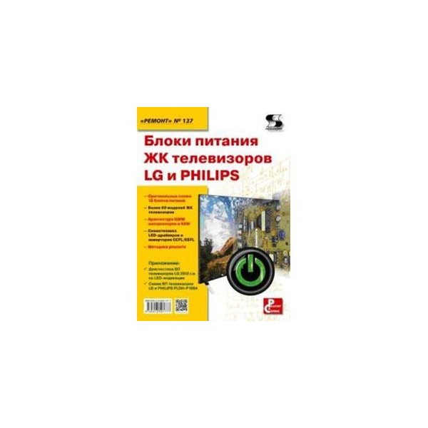 В очередной книге популярной серии "Ремонт" рассматриваются блоки питания современных жидкокристаллических телевизоров LG и PHILIPS производства 2008-2012 гг. По статистике ремонтных организаций это наименее надежный узел современных телевизоров и других устройств, в которых используются ЖК панели. В книге рассматривается 12 блоков питания, которые применяются при производстве более 60 моделей телевизоров. По каждому блоку питания приводятся принципиальная электрическая схема, подробно описываются ее схемотехнические особенности, включая архитектуру интегральных контроллеров, а также перечень типовых неисправностей и способы их устранения. В приложении к книге приведена методика диагностики блоков питания телевизоров LG 2012 года выпуска (более 90 моделей) по светодиодной индикации - LED-индикатор в этих телевизорах размещен непосредственно на плате блока питания.